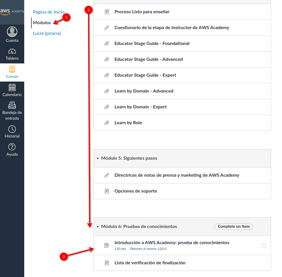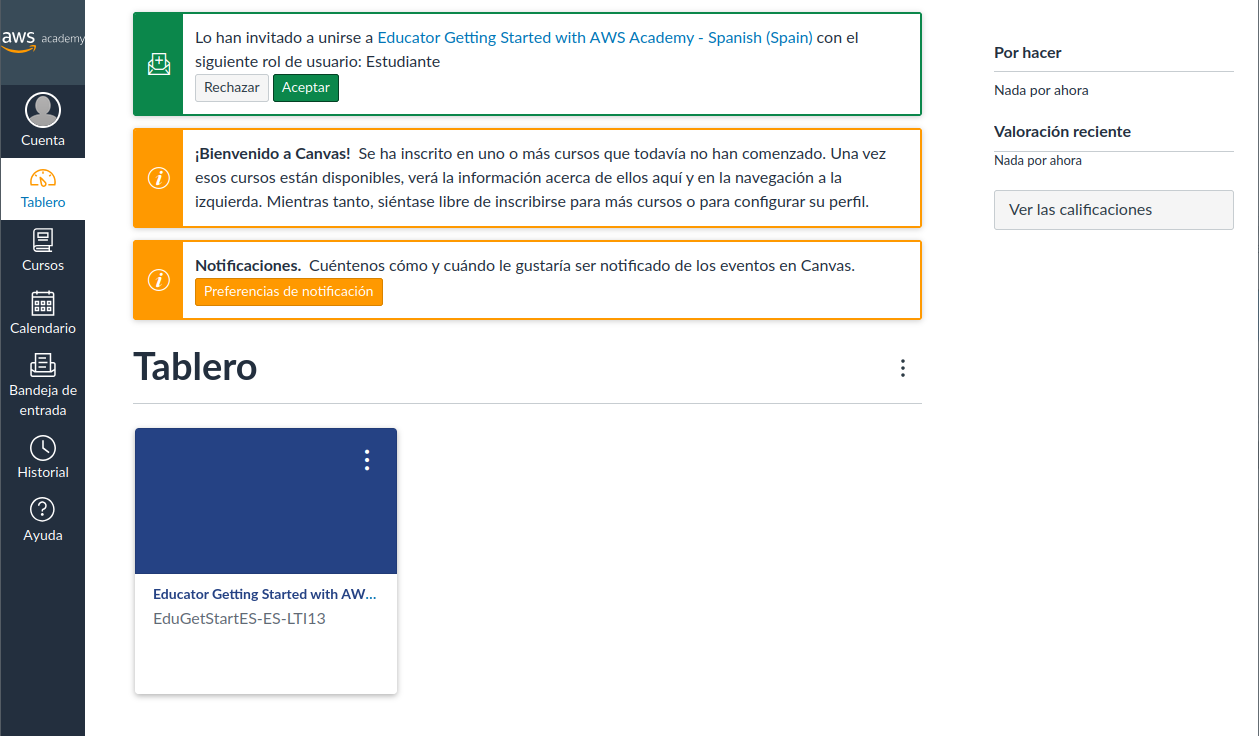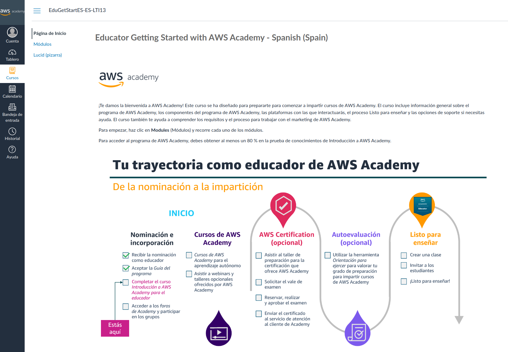Este último paso que nos queda para poder crear nuestros propios cursos en el LMS de AWS Academy es realizar el curso "Educator Getting Started with AWS"