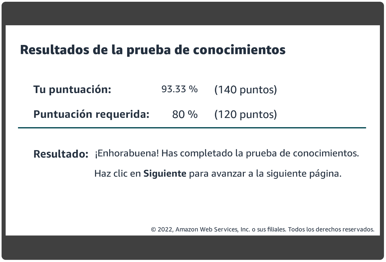 Debemos obtener al menos un resultado de 120 puntos sobre 150.