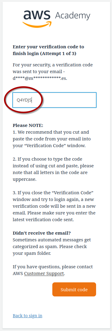 - Inicio de sesión. Para acceder al portal de AWS Academy e iniciar sesión (AWS Academy: https://www.awsacademy.com/sitelogin), necesitarás tu usuario que es tu dirección de correo electrónico (con la que has realizado la solicitud). Además, necesitarás la contraseña que has obtenido siguiendo el apartado anterior.